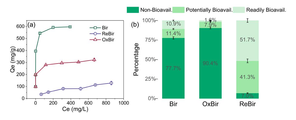 图3 微生物诱导相变前后水钠锰矿Pb(II)吸附等温线及连续提取Pb(II)形态分布