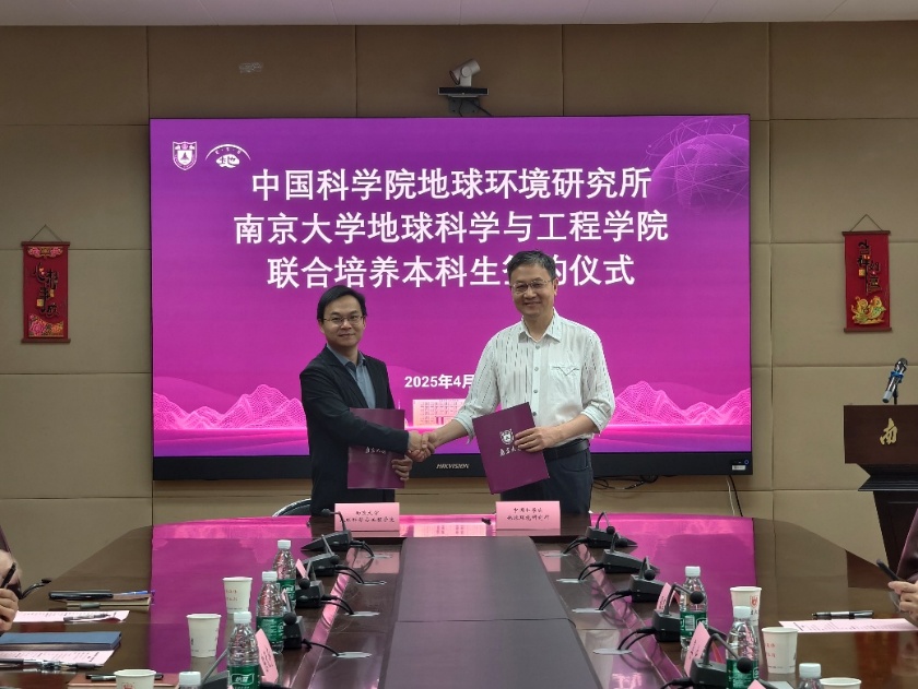 2025年4月28日上午,中国科学院地球环境研究所(以下简称“地环所”)与永利304官网唯一在仙林校区朱共山楼签署校所联合培养本科生合作协议,并进行座谈交流。参会人员主要包括地环所党委副书记、副所长金章东,副所长晏宏,人事教育处处长谭亮成,重大任务办公室副主任蓝江湖;地科院党委书记董婷,院长陈天宇,副书记毛予倩,副院长唐朝生,副院长王小林,院长助理李伟等。