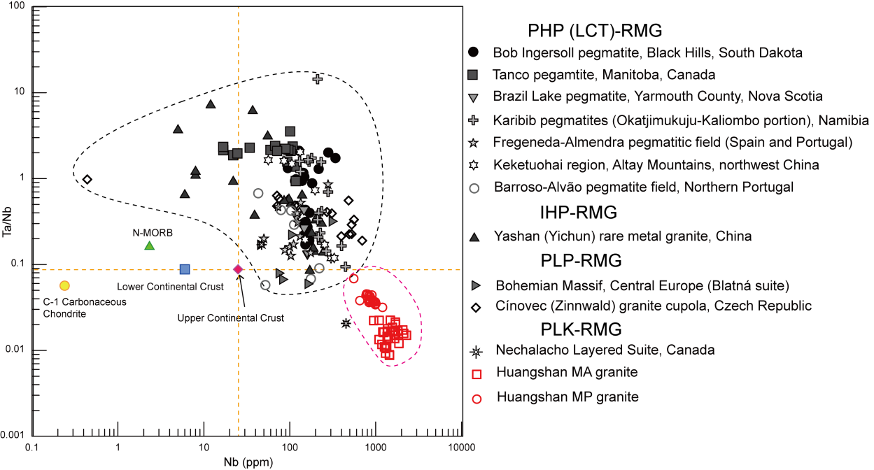 稀有金属,特别是Nb-Ta,是国家经济和国防建设中的“关键金属”。Nb-Ta成矿与高分异高演化的花岗岩及伟晶岩密切相关,并主要以铌钽氧化物矿物的形式产出,包括铌铁矿族矿物,烧绿石族矿物,锡锰钽矿等。近日,永利官网王汝成教授课题组与法国洛林大学GeoRessources实验室的研究人员对江西东北部黄山岩体进行合作研究,发现一种稀有金属成矿新类型,其中Nb-Ta元素主要集中在造岩矿物云母中而非传统铌钽氧化物。相关成果以“A new style of rare metal granite with Nb-rich mica: The Early Cretaceous Huangshan rare-metal granite suite, northeast Jiangxi Province, southeast Chia”为题发表于矿物学顶级期刊《American Mineralogist》。