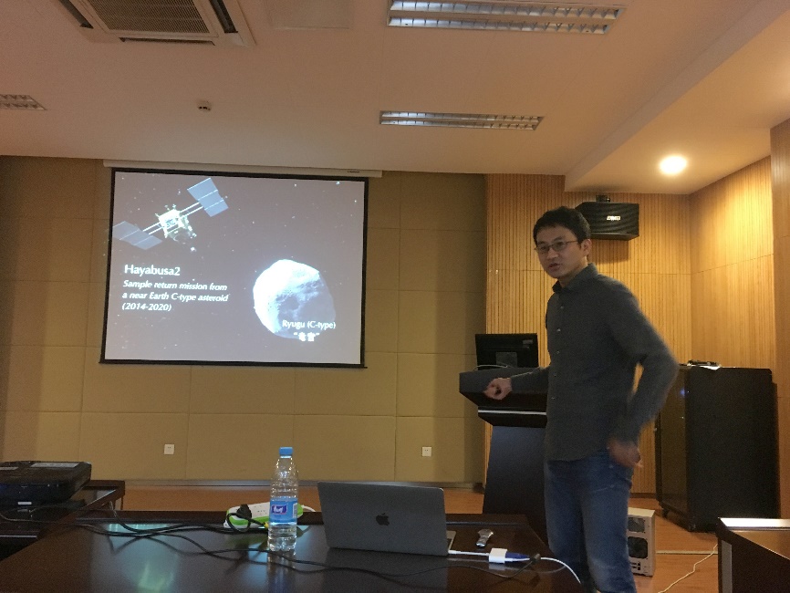 应永利官网张爱铖教授邀请,日本北海道大学Shogo Tachibana教授于11月17-18日在永利官网进行了学术访问,并为永利官网师生作了题为“Hayabusa2: Sample return from a C-type near Earth asteroid Ryugu”的学术报告。访问期间,Tachibana教授还与张爱铖教授就加强天体化学相关的科研合作和研究生培养可能性进行了深入讨论。