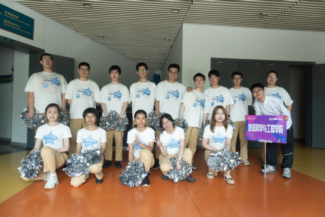 随着激昂的音乐响起,各队伍创意十足的入场式为大赛拉开序幕。永利304官网唯一代表队身着统一印有字样“HAPPY TIME”白色T恤,手持银色花球,以整齐的步伐和饱满的精神亮相,展现出地科学子的团结与朝气。