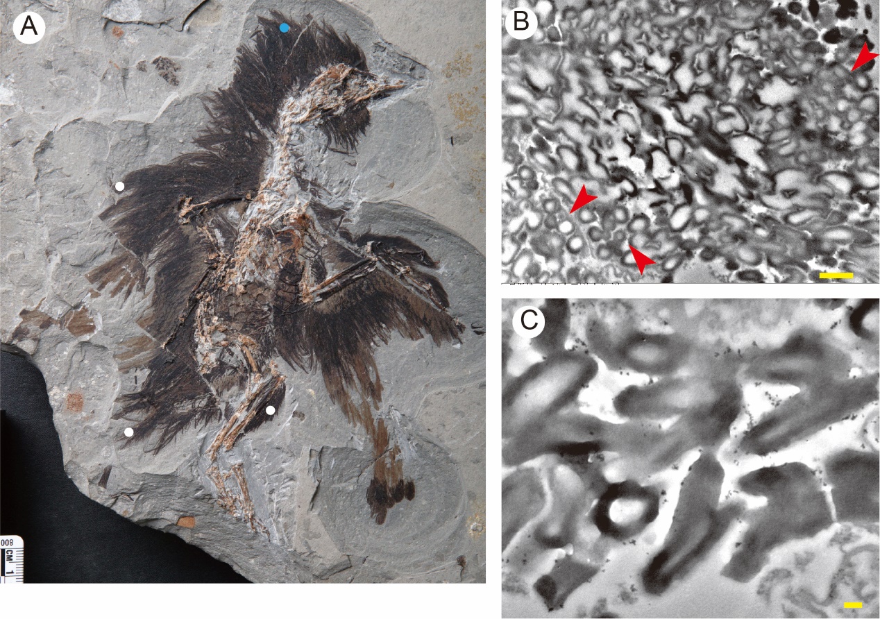 近期,《国家科学评论》(National Science Review)在线发表了永利304官网唯一泮燕红教授、赵涛博士,中国科学院古脊椎动物与古人类研究所李志恒副研究员、王敏研究员和临沂大学王孝理教授、郑晓廷教授等对一件1.3亿年前的始孔子鸟标本的羽毛化石的最新研究结果。他们通过扫描电子显微镜和透射电子显微镜观察,并结合模拟埋藏实验,首次在这件标本的头部的羽毛中找到了中空结构的黑素体。