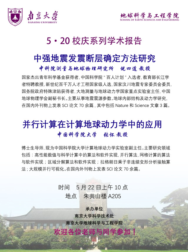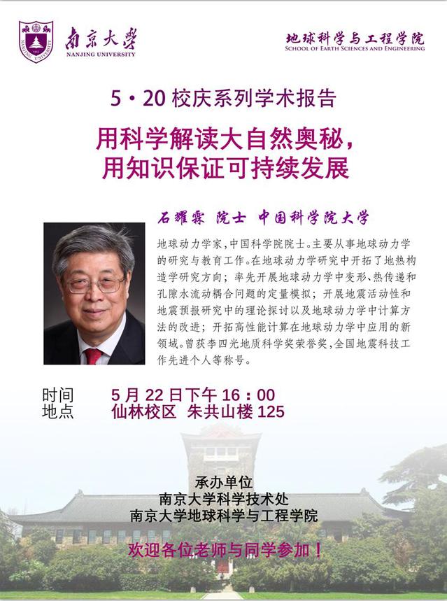 2017 南大520校庆系列学术报告-石耀霖院士、张怀教授和倪四道教授
