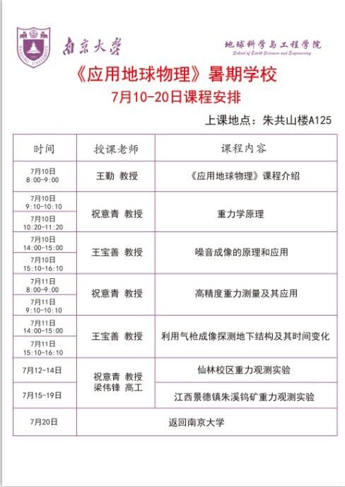 开展“应用地球物理”暑期教学活动