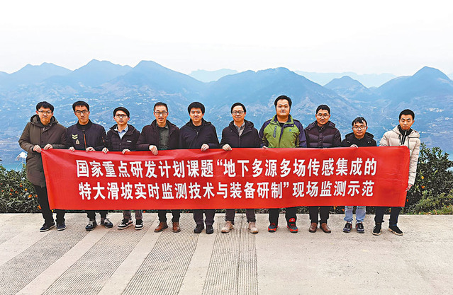 2020年,新冠病毒疫情期间,朱鸿鹄(右五)团队完成长江三峡库区滑坡监测示范