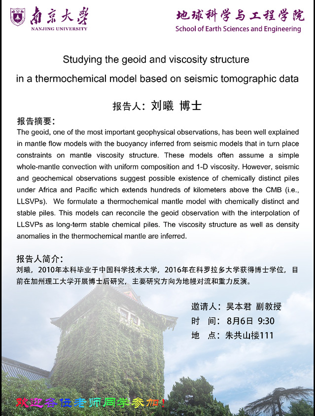 2018-8-6 美国加州理工大学刘曦博士报告:Studying the geoid and viscosity structure