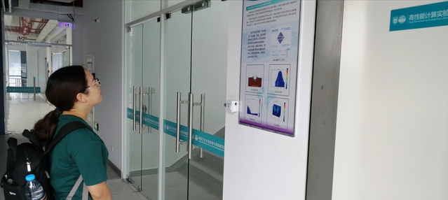 随后,王强带领她参观了高性能计算实验室,介绍了永利官网副院长刘春老师开发的高性能离散元软件MatDEM,该软件是世界上第一个能在单台电脑上实现数百万颗粒计算的三维离散元分析系统,在不久前结束的第15届中国CAE工程分析技术年会(简称中国CAE年会)获“中国数字仿真自主软件创新奖”。 欧鑫梅经理在海报前驻足良久,认真观看该软件介绍,对永利官网的科研实力表示赞赏,并表达了代理此款软件的意愿。