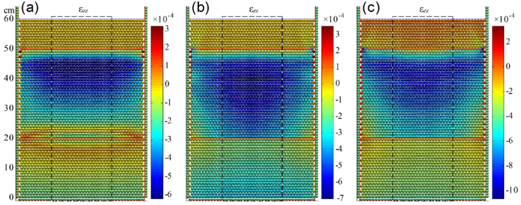 图2 负孔隙水压力作用下的土层应变模拟结果