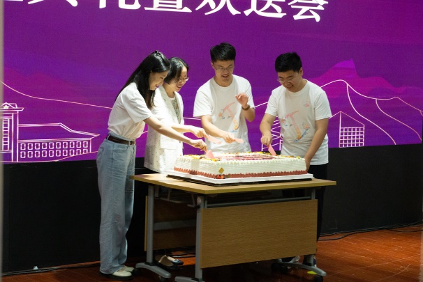 最后,由师生代表上台共切学院为大家准备的毕业蛋糕,老师、同学和家长一同分享这个甜蜜的蛋糕。毕业,既是离别时刻,又是新的起点。愿每位毕业同学怀揣梦想,勇往直前,续写人生新篇章,未来的每一步都坚实有力,每一天都充满阳光!