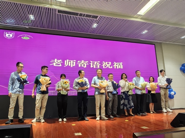 桃李不言,下自成蹊。对于师者而言,尽心教诲学生已成习惯。同学们为感念过往师恩,向教师代表献上鲜花表达对老师们的感激之情。教师代表一一对即将毕业的同学送上叮嘱与祝福——2024届毕业生是特别的一届,与疫情顽强搏斗,展现出坚韧与毅力;大学毕业并非终点,而是新征程的起点,未来将会机遇与挑战并存,愿所有同学都能够秉持校训,怀揣梦想,真诚做人,恒心做事;把握青春,向外航行更远,飞得更高走得更远;愿大家心中有爱,眼里有光,保持身心健康,生活有规律,有张有弛;愿大家带走回忆,留下约定,不忘初心,方得始终……