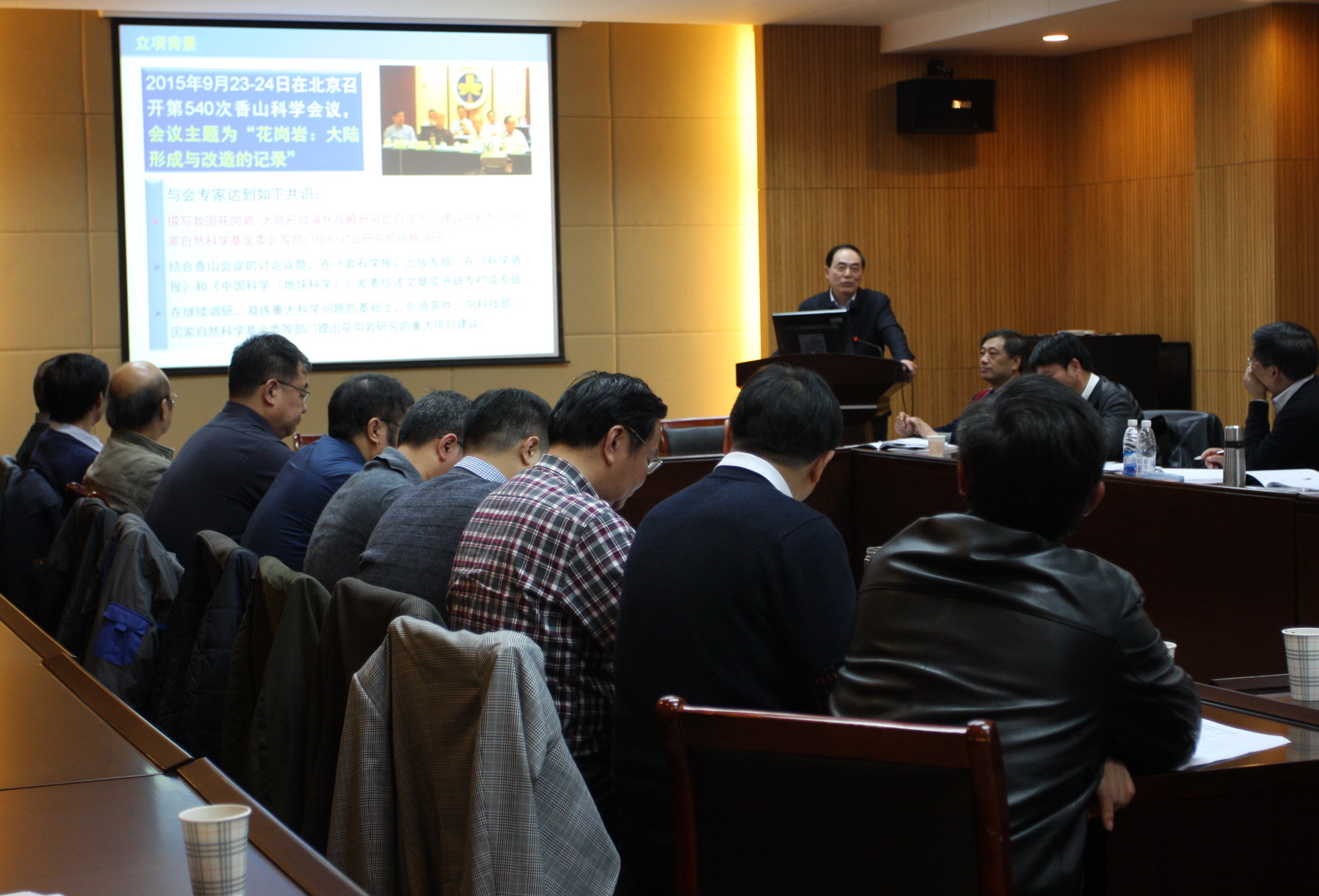 2016年12月12日,中科院地球科学部学科发展战略调研项目《花岗岩成因与大陆演化》正式在南京启动。中科院院士工作局地学部、项目咨询专家组、项目工作组和骨干成员共40余人参加会议。