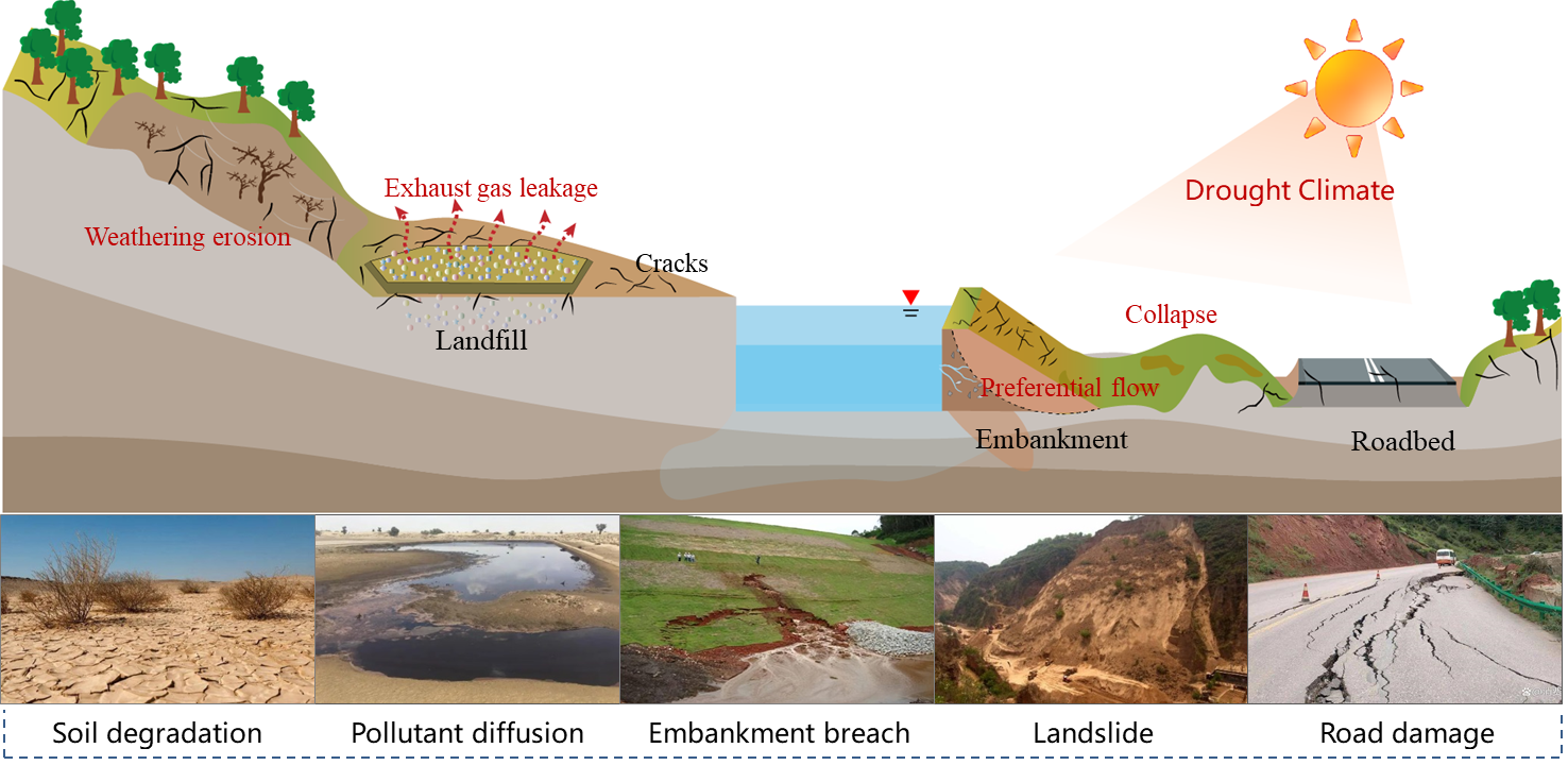 图1土体龟裂诱发典型工程地质与环境地质灾害示意图