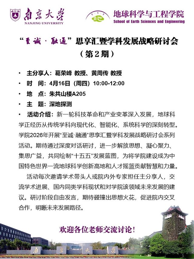 深地探测是当前我国地球科学和能源资源领域的国家战略科技任务,主要依托深地国家科技重大专项推进实施。涉及学院多个学科方向领域,欢迎大家交流研讨!