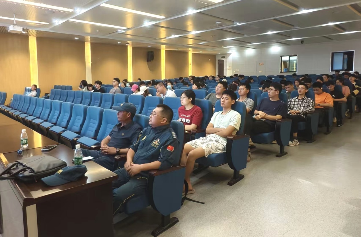 南京蓝天救援队理事、副队长“行者”结合自身丰富的实战救援经验向师生们介绍了野外环境中装备准备的重要性,以及可能遭遇的典型风险类型及应对思路。他特别分享了遭遇悬崖落石、雨林山洪、失温中暑、掉队迷路等状况下,如何更好地利用现有条件维持基本机能,提高获救几率的方法和经验教训,通过真实案例深入剖析了风险识别、团队协作、应急决策等在野外紧急情况下的关键作用。