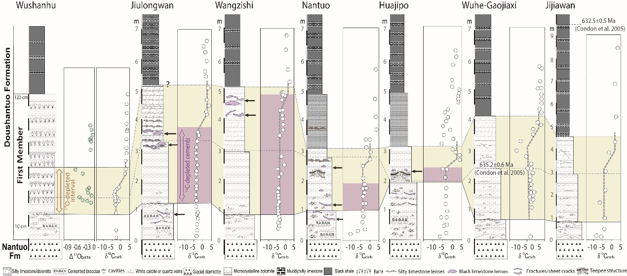 这个地质时期,是地球地质历史上经历过的“最动荡的年代”。地球刚从“雪球地球”全球冰期中挣脱出来,海洋和大气的物理化学状态,仍然处于剧烈的动荡期。17O负异常的重晶石,碳同位素负异常的方解石,盖帽白云岩的地球化学和岩石学,结合isostatic rebound和冰后海水动态分层模型,我们可以把海洋硫酸根浓度突然增加和17O负异常事件的发生时间限定在冰川开始融化后的5万年的时间内。这对我们认识地球的各个圈层面对极端事件如何相互作用和响应有重要帮助。