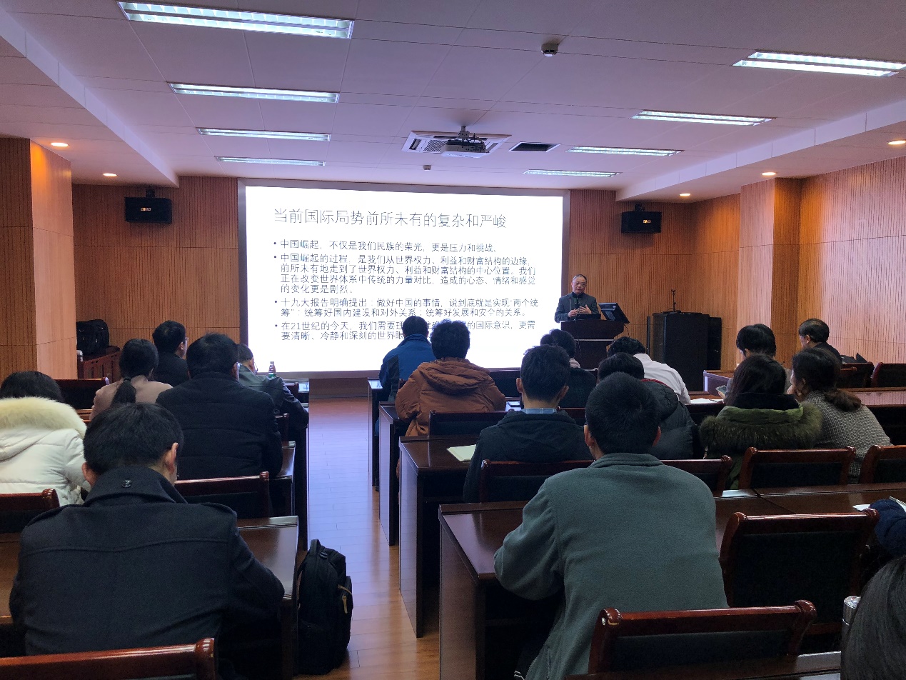 12月20日下午2点,应永利304官网唯一党委之邀,永利304官网唯一中国南海研究协同创新中心执行主任、党委理论讲师团专家朱锋教授为永利官网师生作题为“贸易战、中美关系与世界政治新局势”的党课,党课由院党委书记王唯主持。