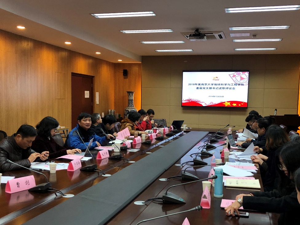 12月26日下午2点,永利304官网唯一党委在朱共山楼举行2018年度基层党支部书记抓党建工作述职评议会。永利304官网唯一基层党建工作第九督导组副组长李宁、许辰和组织部张培科长现场指导,地科院党委委员及基层党支部书记参加了本次述职评议会,会议由地科院党委书记王唯主持。