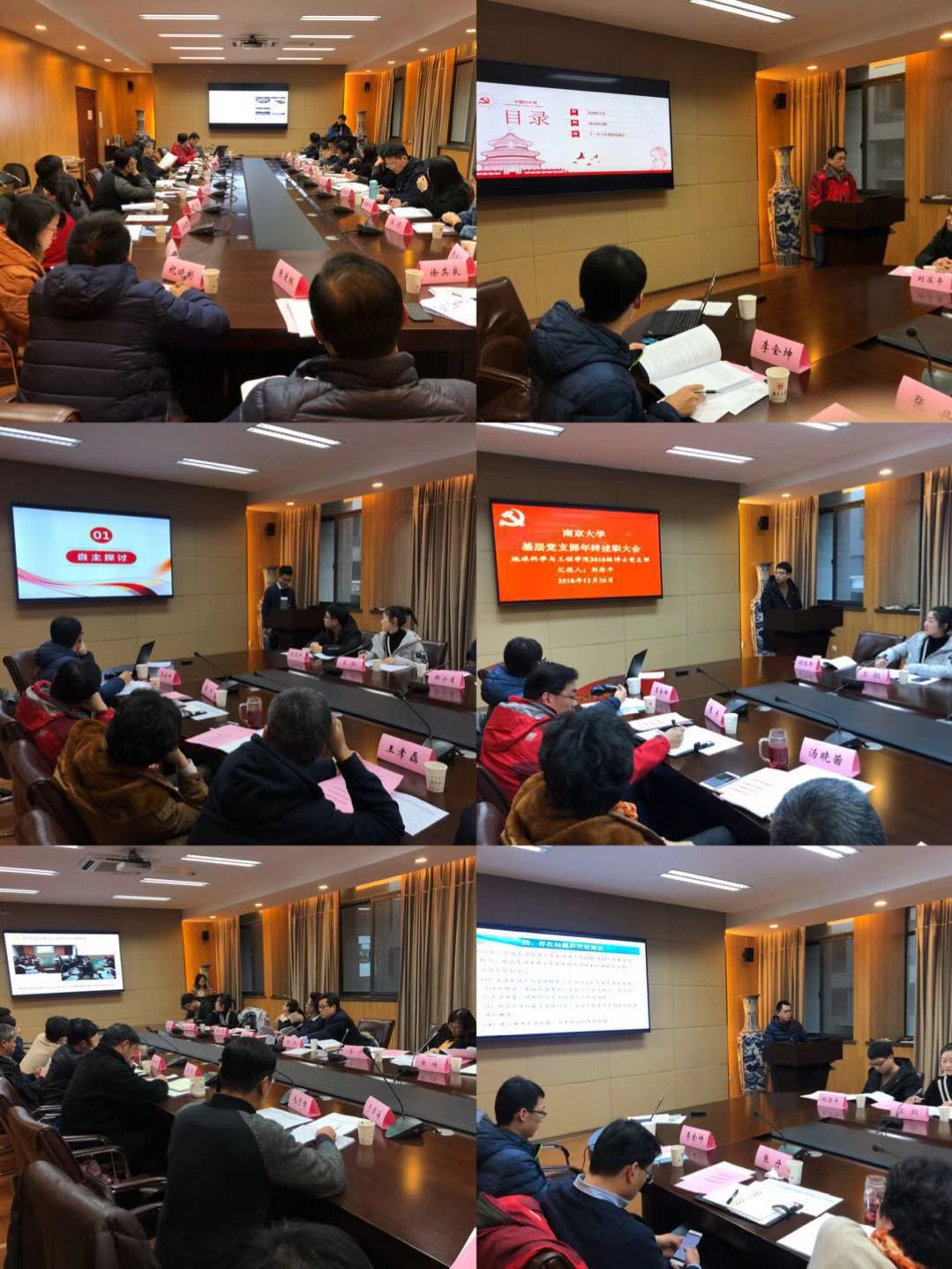 王唯书记先汇报了地科院党委一年来落实基层党建工作情况。随后,地质工程、构造古生物、水文、地化矿床、岩矿、行政与国家重点实验室等六个教工支部以及本科生、硕士生和博士生等十个学生支部的支部书记相继进行了述职,实现了现场述职全覆盖。