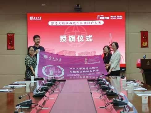 蔡丹丹副处长与董婷书记共同为科考队授旗,现场参会人员合影留念。代表永利304官网唯一科考队的紫色队旗承载着学校使命与学术理想,标志着本次为期九天的苏港联合科考正式扬帆启航。