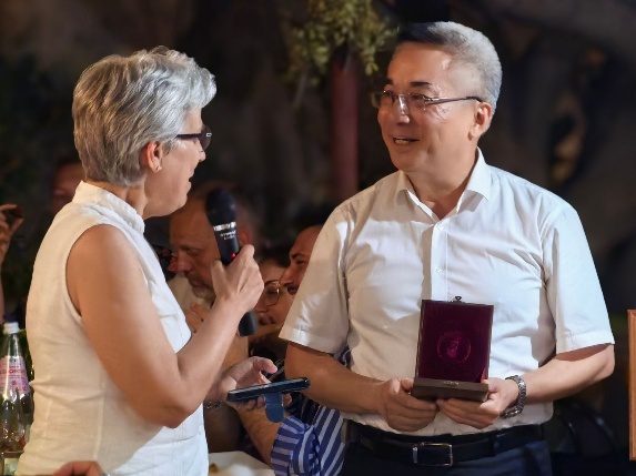 国际地球化学协会主席Elisa Sacchi向王焰新院士颁发奖章及证书