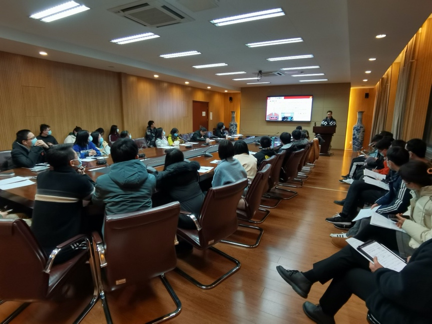 随后,研究生辅导员汤晓茜老师讲话。她首先肯定了本支部换届选举流程的规范以及支部今年举办的一些特色活动,并希望大家重视支部评议会。此外,她提醒同学们学习新的理论,鼓励同学们要“及时学,勿拖延;跟进学,勿陈旧”。并希望大家对新一年的校、院活动提出自己的设想和建议。