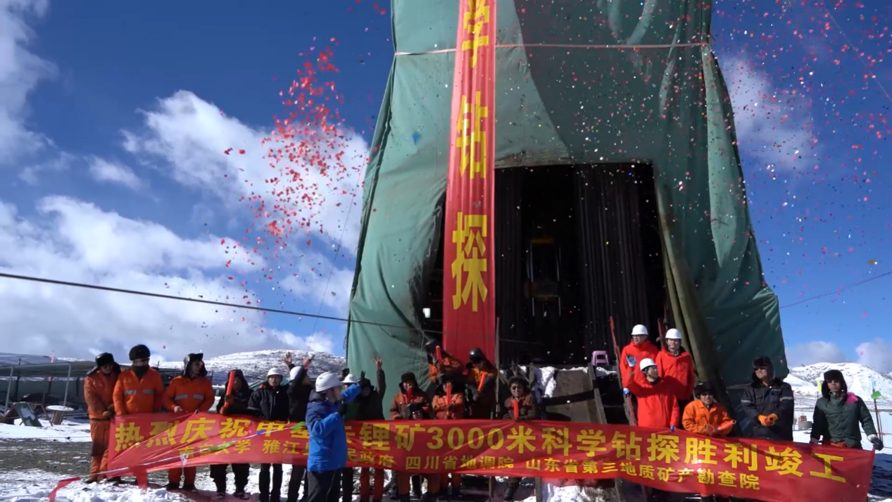 艰难起步、胜利收官!自2020年6月3日正式开钻以来,在高寒酷冷的4500米川西高原,克服重重困难,经过7个多月的奋战终于完钻,实现98%的极高岩心采取率,圆满完成预定目标。据初步调查,在已获取的3000米岩心样品中,成功地发现1400米厚的伟晶岩,其中包括含锂辉石矿伟晶岩带和含铍-铌-钽矿伟晶岩带;2700米处进入科钻目的层-花岗岩母体,并发现深部特殊的变质带。该科研成果将为探索川西伟晶岩型锂矿成矿机理、建立伟晶岩型锂矿创新理论、实现锂矿找矿突破提供有力数据支撑,为国家新能源安全提供要素保障。
