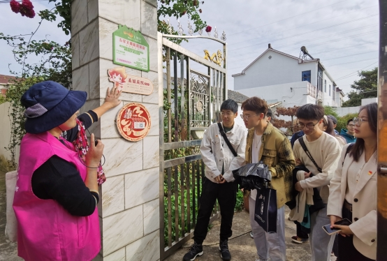 (上坝村村民向同学们讲解“美丽庭院”治理模式)