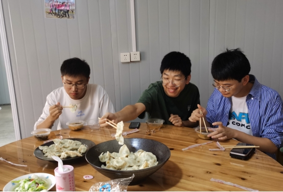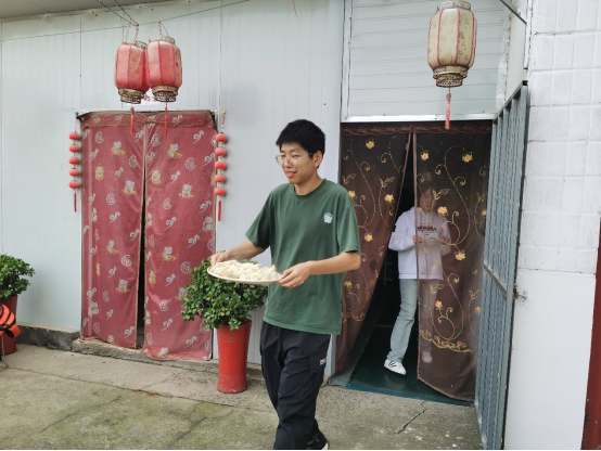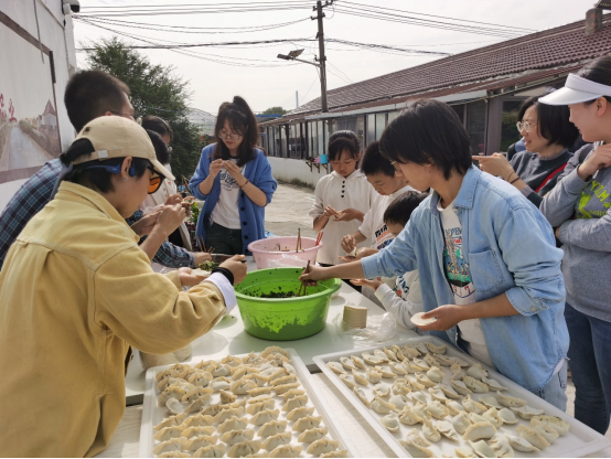 完成秋收活动后,志愿者们来到“巧云阿姨农家乐”,一起蒸红薯、包饺子。大家围站在一起,拿起饺子皮,灵巧地包起各种口味的饺子。大家相互交流经验,分享包饺子的技巧,笑声不断,气氛温馨而愉快。包好的饺子随后送入煮锅,待饺子熟透,散发出诱人的香味,同学们迫不及待地品尝起来。每个人都品味着自己亲手包制的美味饺子,尝到了自己的劳动成果,与村民一起享受秋收的喜悦。