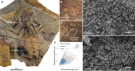 图3:双钵翔齿兽(Vilevolodon diplomylos)化石毛发结构与黑素体几何形态