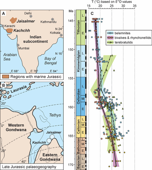 Matthias Alberti et al. 2022. Middle to Late Jurassic stable isotopes and element ratios of fossils from western India: Developing a reference temperature curve for northeastern Gondwana. Global and Planetary Change. https://doi.org/10.1016/j.gloplacha.2022.103795