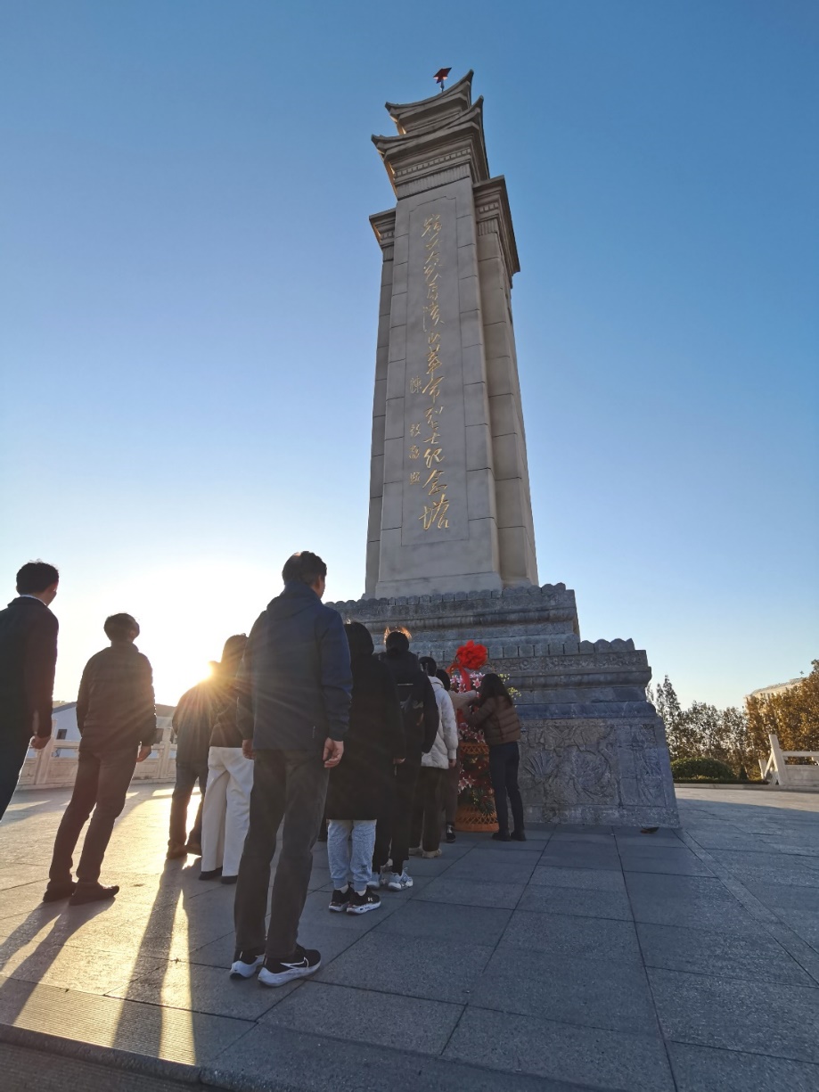 踏着夕阳余晖,支部党员们首先来到宿北大战纪念馆。在庄严的烈士纪念塔下,党员们怀着崇敬的心情,向英雄烈士敬献花篮,并默哀致敬,深切缅怀革命先烈的不朽功绩。党员们在纪念馆中详细学习并了解了有关宿北大战的历史背景和战争的全过程。