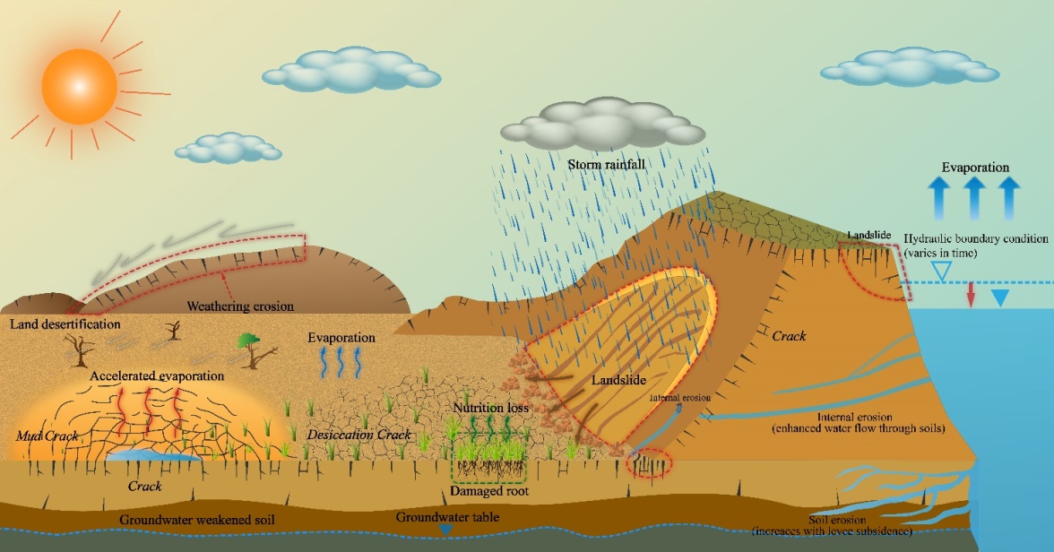 2与土体龟裂相关的工程地质与环境地质问题示意图