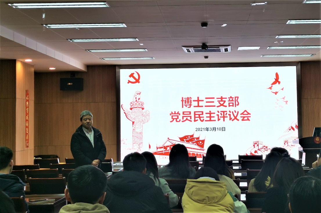 2021年是中国共产党建党100周年。为深入学习贯彻习近平总书记重要讲话精神,以党的政治建设为统领,使党员同志守初心不忘本、担使命做先锋,从而把党支部建设得更加坚强有力,3月10日,永利304官网唯一博士生三支部在朱共山楼A125会议室召开党组织生活会,开展党内民主评议。会议由支部书记郭琼泽主持,永利304官网唯一党委委员王孝磊同志出席会议。