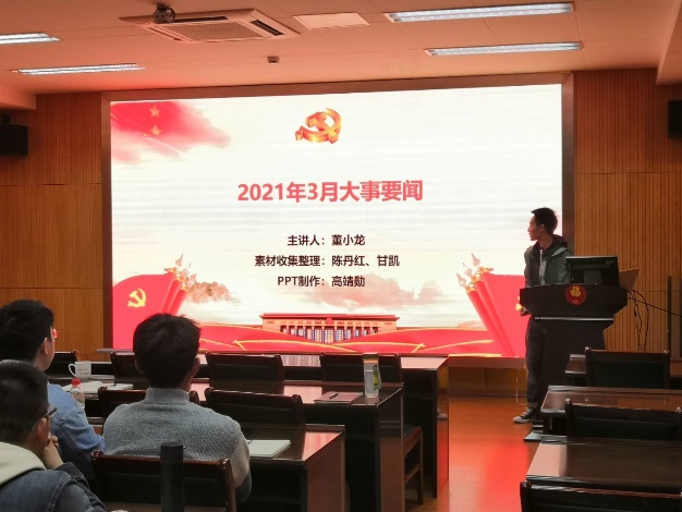 “国内外大事要闻”为2019级硕士生一支部的创新学习内容,旨在督促广大党员同志养成“知时事,强理论”的党性修养和学习习惯。本次分享会由董小龙、陈丹红、甘凯和高靖勋四位党员同志共同负责,董小龙作为主讲人带领支部同志共同学习。针对国内外大事要闻,同志们各抒己见,对祖国所取得的伟大成就表达出了由衷的自豪,在国际争端问题上表达了自己坚定的立场,痛斥国外无理的丑恶行径。
