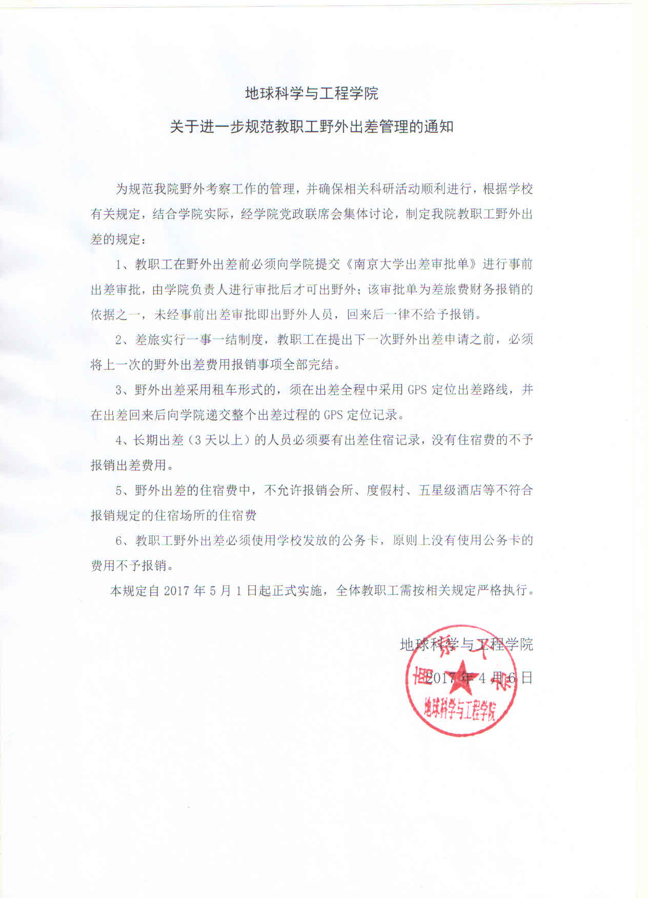 本规定自2017年5月1日起正式实施,全体教职工需按相关规定严格执行。