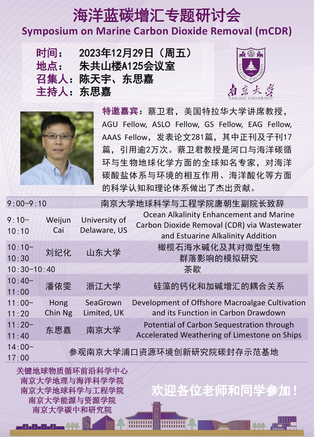 海洋蓝碳增汇专题研讨会 Symposium on Marine Carbon Dioxide Removal (mCDR)