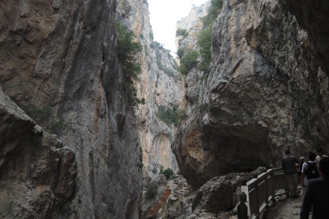 随着汽车驶入蜿蜒的山路,路旁裸露的岩石逐渐从土黄色变为灰白色,岩性也从碎屑岩过渡为碳酸盐岩。穿过薄雾,我们在一片荒草地前停下。Osman教授指向眼前高耸的岩壁:“这是一套碳酸盐台地沉积物。”