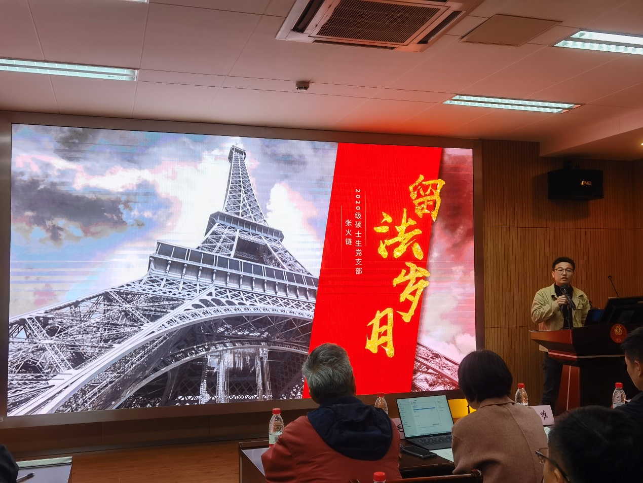 2020级硕士生支部张火链为我们讲解了近代中国有志青年远渡重洋赴法勤工俭学,最终走上革命道路的历程的故事。青年党员应该像他们一样为中华民族伟大复兴贡献自己的力量。