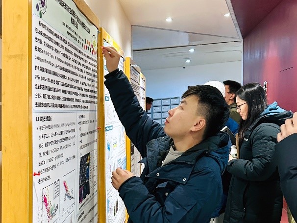 茶歇期间,高宇新、张慧丽、薄容众、王德洋四位博士研究生以海报的形式向大家展示了他们在留学和参加国际学术会议期间的收获与感悟,并与参会同学展开了热烈的学术讨论。展板环节结束后,参会同学进行无记名投票,张慧丽获得最佳海报奖(题目:霞石岩中橄榄石斑晶组成揭示中国东部地幔中的碳酸盐化榴辉岩组分)。