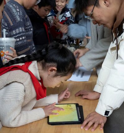 地质图教学活动中,志愿者特意选取江苏省地质图,教授小朋友们认识地质图上的河流,湖泊,城市、岩性等图例及它们的含义。在志愿者的引导下,小朋友们从最初的不敢尝试,到最后信手拈来,能够快速识别志愿者所说的城市,河流,湖泊等内容,甚至自己找到了学校所处的大致位置。