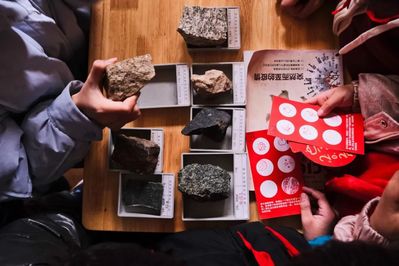 本次活动准备了片麻岩、板岩、橄榄岩、玄武岩、砂岩等特征各异的经典岩石。志愿者为小朋友们讲解了以上岩石的基本特征,并教授了小朋友们基本的岩石鉴定方法。小朋友们展现出了对岩石样品的高昂兴趣,主动询问志愿者一些问题,并表达自己的理解。参与活动的小朋友们表现出色,不仅能够记忆大部分岩石的名称和特征,还能够向身边的同学们分享自己学到的知识。