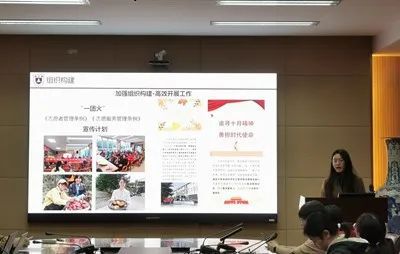 团委组织部部长贾露进行述职汇报。组织部作为团委的中枢部门,既要对接校团委,也要联系团支书,处理各团支部的团务工作。过去一年里,组织部开展了多次院系层面的团日活动,如联合主题班团会议,实践育人成果汇报走进支部团日活动,同时结合团员们关心的就业、教育、志愿活动等问题,深入贴合青年学生普遍需求,带领团支部完成专题学习,学习覆盖率达到100%。另外,组织部还开展了团干部选拔与培训工作,完成春季和秋季积极分子推优工作,团骨班、青马工程和研骨班的选拔工作。