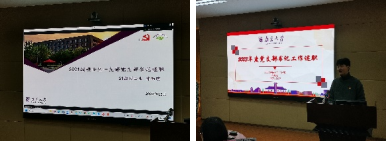 接着,校党委组织部束方银老师对支部工作进行点评,他指出各支部的党建工作都有很大的收获与进步,在抓党建、促发展,党建工作与中心思想相结合方面都有突出与亮眼的成果,同时也指出了党支部工作存在的不足,束方银老师强调,第一,要将政治建设摆在首位,进一步推动党员的党性锻炼工作;第二,要始终把学习放在心上,加强党的理论学习武装,一方面要与时俱进,及时跟进总书记的重要讲话精神,另一方面要加强业务与规章制度的学习,加强工作学习方法的学习,将党建工作与业务工作更好融合,从而更好发挥党建工作引领作用;第三,要进一步推动学院支部标准化、规范化建设与对标争先建设,推进打造富有南大特色与地科特色的党建品牌工作;第四,要加强党员教育管理,提高质量,发挥作用,加强党员队伍建设。