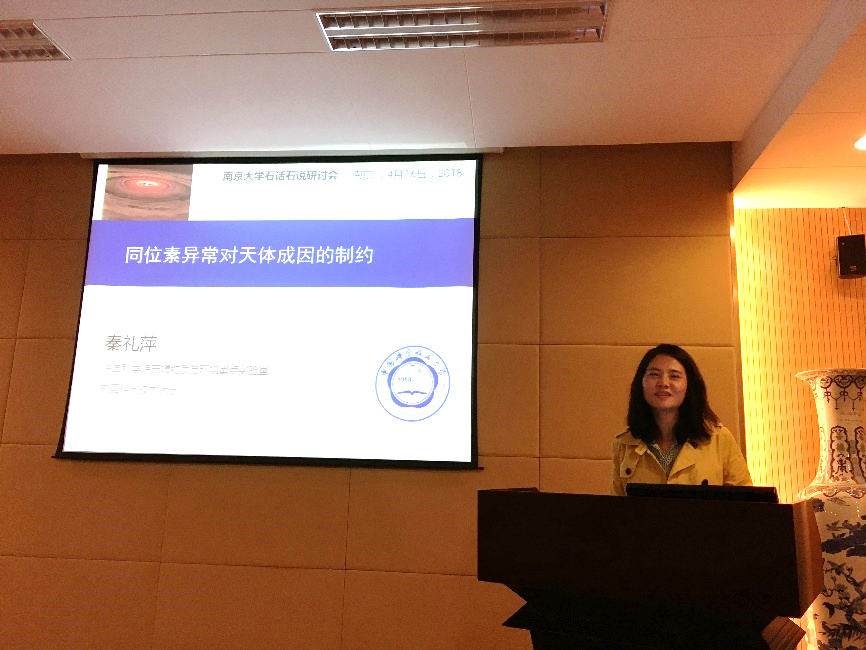 学术论坛的报告分上下两个半场,上半场由李世杰研究员、王华沛教授和秦礼萍教授三位老师作报告。李世杰研究员的报告题目是《中国沙漠陨石的收集与研究》。李老师使用幽默的语言、翔实的图片和可靠的数据讲述了沙漠陨石的鉴定、沙漠陨石的实地收集和沙漠陨石的研究等知识,并就未来沙漠陨石的研究计划与与会师生进行了热烈交流。王华沛教授的报告题目是《陨石的磁学研究》。王老师介绍了地球和行星磁场的重要性及行星古磁学的研究意义,并以陨石磁场对太阳星云消散时间和行星磁场发电机的启动过程的限定为主要内容介绍了陨石磁学研究在行星科学中的重要应用。秦礼萍教授的报告题目是《同位素异常对天体成因的制约》。秦老师的报告从什么是同位素异常及同位素异常的发现历史切入,介绍了国际上金属同位素异常的研究进展,然后她介绍了他们课题组最近在球粒的Pb-Pb年龄和Cr同位素异常方面的最新研究成果。