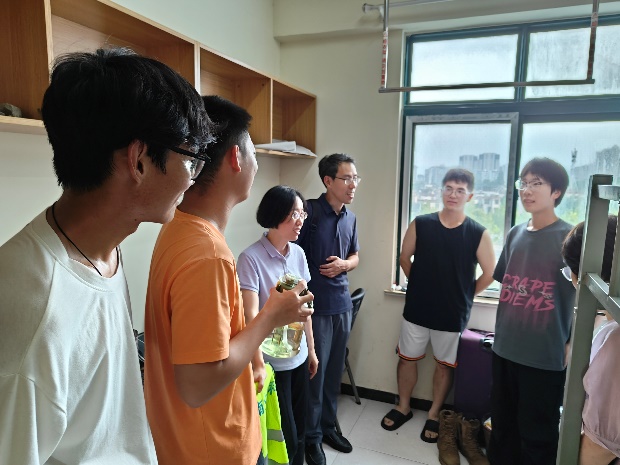赛后,院领导积极走进“三室一厅”,前往学生们的宿舍进行慰问,了解同学们实习期间的食宿情况。董婷一行来到同学们的宿舍,关切地询问同学们对住宿环境和餐饮的满意度,以及在实习生活中遇到的困难。通过查看同学们的绘图成果,了解他们在实习期间的收获和感悟。