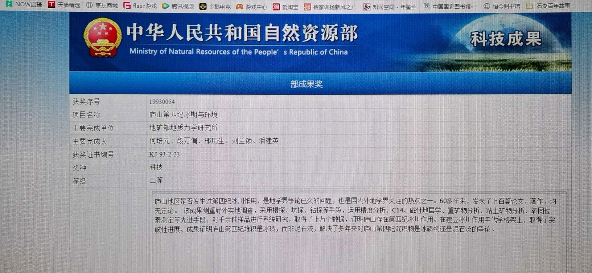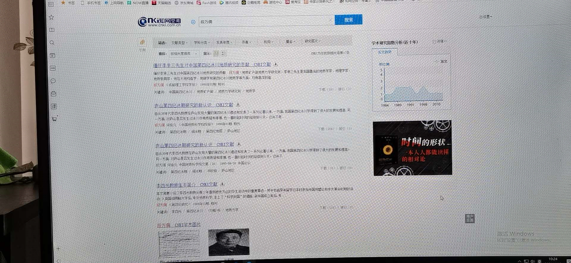 段万倜经历过无数次的野外考察实践,总结发表了《陕西蓝田地区第四纪冰川遗迹述要》、《四川西昌螺髻山第四纪冰川地质》、《青藏公路沿线第四纪冰期的研究》、《中国第四纪冰川地质学史概要》、《地质力学的创立与应用》等数篇论文,其《庐山第四纪冰期与环境》课题荣获1993年度中国地质矿产部科技成果二等奖,1995年国家科学技术委员会登记为国家科技成果。父亲段万倜,的确把自己的一生无所保留地,奉献给了他所热爱的地质事业。