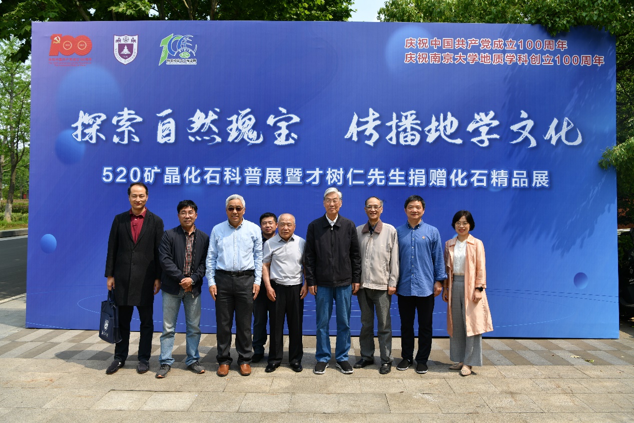 5月18日,为庆祝中国共产党成立100周年和永利304官网唯一地质学科创立100周年,结合党史学习教育永利304官网唯一开展的“学党史增自信,地学文化育新人”系列活动正式拉开帷幕。才树仁先生是锦州市古生物化石民间收藏爱好者,他将多年收藏的珍贵化石捐献给永利304官网唯一,并希望让更多的学子从中受益。为了弘扬民族文化和传播才先生的“大爱”精神,永利官网特举办“5.20矿晶化石科普展暨才树仁先生化石捐赠仪式”。捐赠仪式在朱共山楼一楼大厅举行,邀请了化石捐赠人才树仁先生和永利304官网唯一环境学院张全兴院士参加,永利304官网唯一沈树忠院士、党委书记王唯、副院长王宝军、党委副书记毛予倩、办公室主任王淑君以及部分教师和学生参加了捐赠仪式。