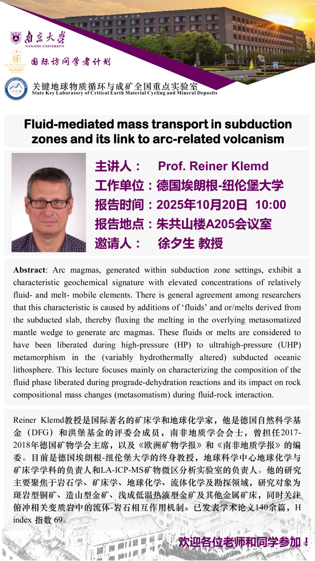 Lecture: Fluid-mediated mass transport in subduction zones and its link to arc-related volcanism