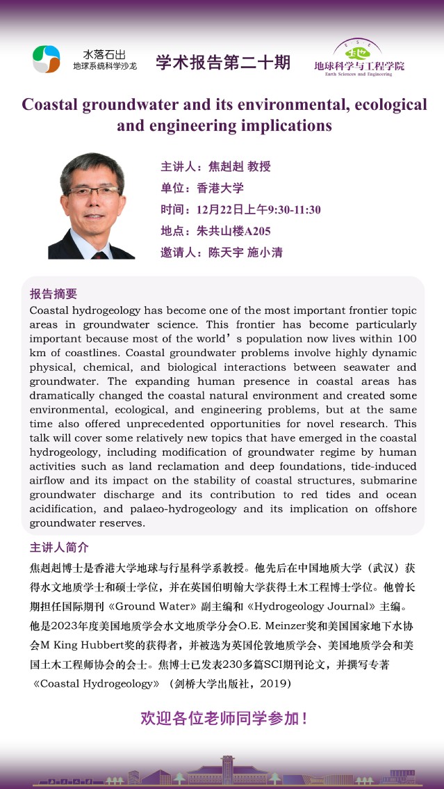 Lecture: Coastal groundwater and its environmental, ecological and engineering implications