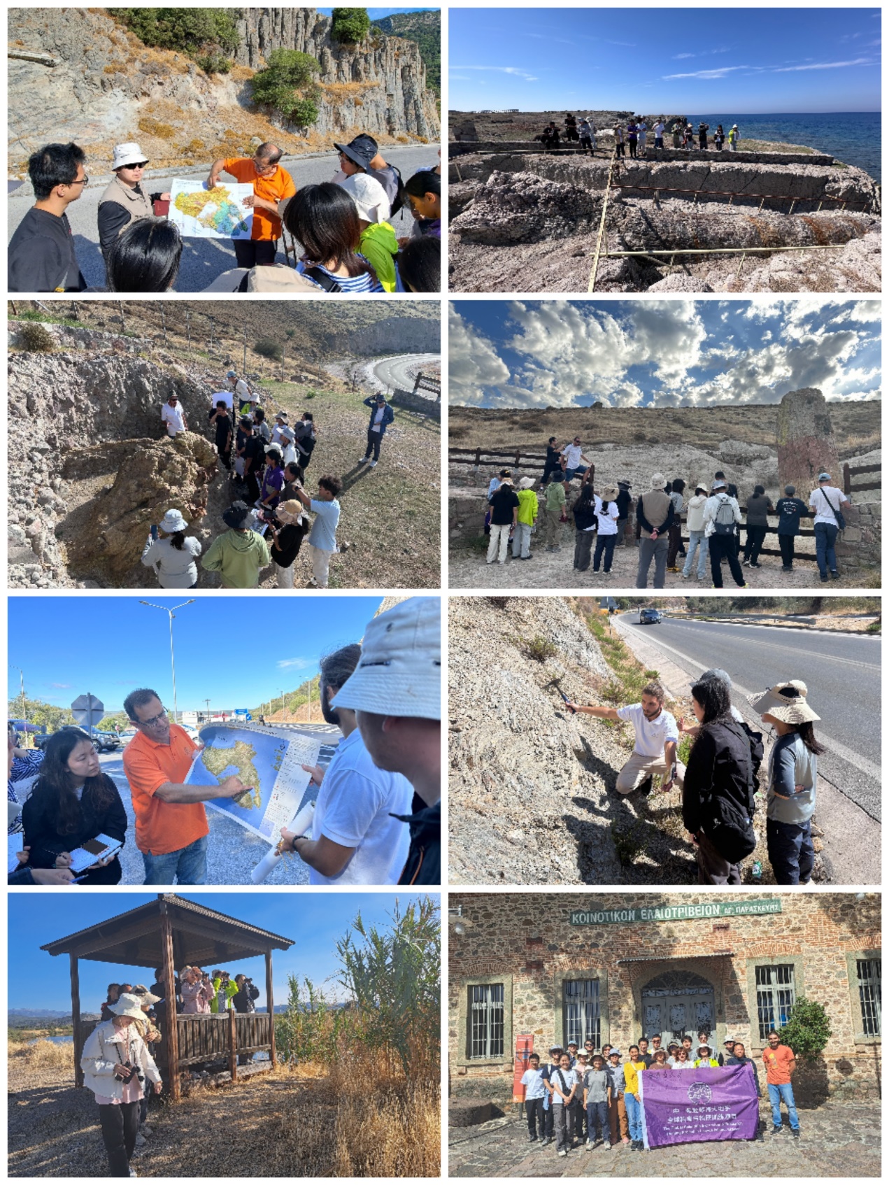 Lesvos is renowned for its diverse geological monuments and unique landforms. Among these are impressive volcanoes, hot springs, significant fossil sites, extensive geological faults, waterfalls, and coastal formations that provide vital evidence of the geological history of the Aegean basin. Under the guidance of Professor Nickolas Zouros from the University of Aegean, team members examined volcanic structures, hot springs, and faults, visited the Lesvos Petrified Forest Geological Park to study the formation and preservation of silicified woods, and made inferences about ancient environments.